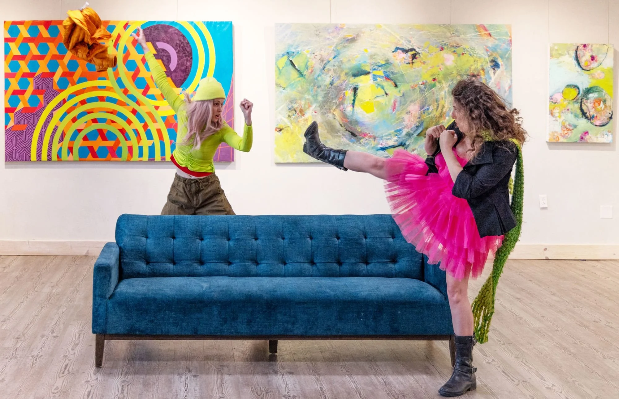 An exhibition on neurodiversity as a community asset exploring the edges between logic and instinct. Pairing Emily Harper’s hard-lined geometrics with M. Lind’s abstract chaos, they contemplate the inner workings of the artist's mind and how it presents itself in the form of similarly colorful process-oriented abstractions.